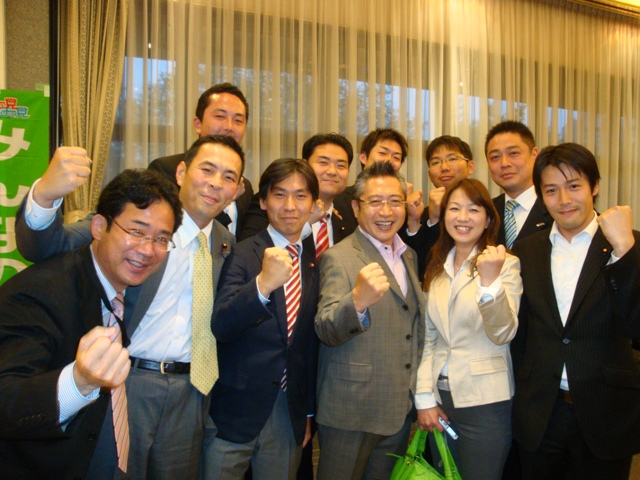勉強会のあとは、懇親会が行われました。 激戦を勝ち抜いた仲間たちとの喜びのひとときと共に、 各地区での問題や政策などを話しました。