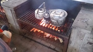 野外炊事場でカレー又は豚汁、飯盒でごはんを。