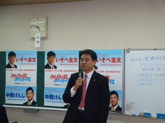 中西けんじ参議院議員をお招きし、国政報告と市政報告を行いました。