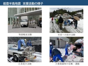 本市では、地震のあった元日には応援連絡体制を確立、翌2日には被災地支援チームを設置し、災害用救援物資の提供をはじめ、その後様々な支援を実施しました。