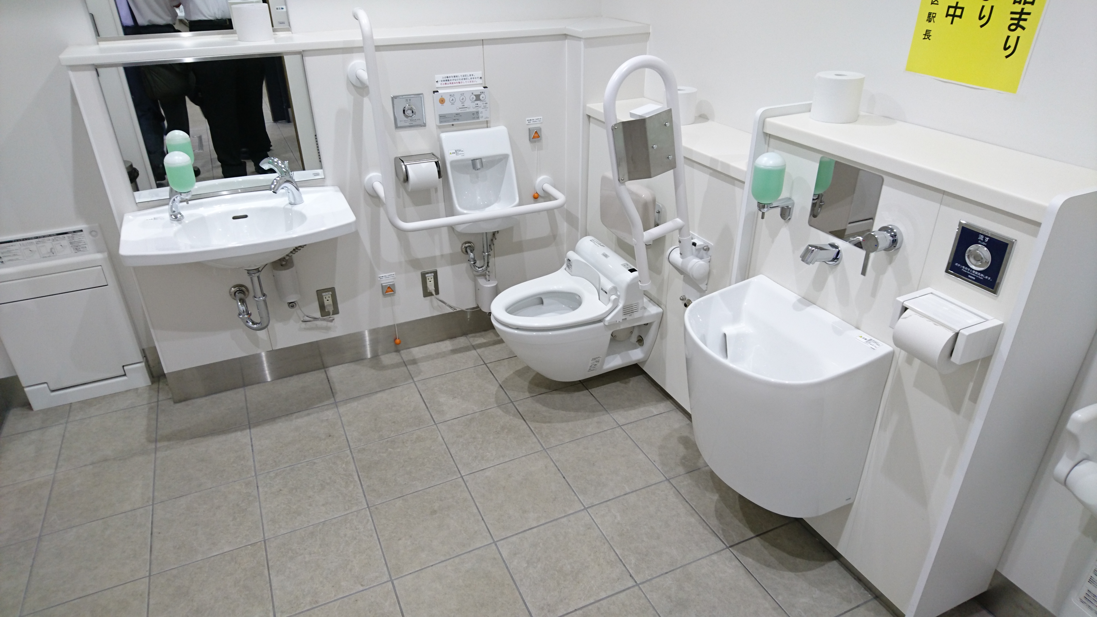 各駅には障害をお持ちの方用に、多目的トイレを右利き、左利き、それぞれの方が使いやすいタイプを設置しています。